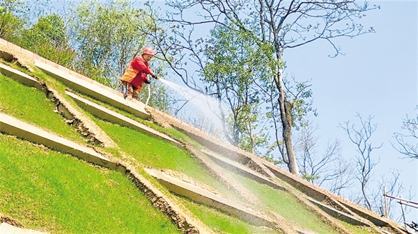 在“安康湖”博物館段南側生態(tài)修復工程現場,記者看到,這面曾經因風化裸露存在安全隱患的山體,如今通過噴漿、格構梁護坡再覆綠的“地質縫合術”重獲新生。