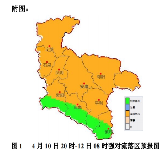 4月11日:白天陰天有陣雨或雷陣雨,鎮(zhèn)坪局地中到大雨,過程期間伴有陣性大風(fēng)和短時強(qiáng)降水等對流性天氣;夜間陣雨轉(zhuǎn)陰天;