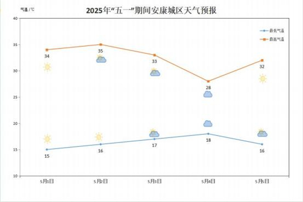 預(yù)計(jì)“五一”期間我市川道地區(qū)最低氣溫13~19℃,最高氣溫32~36℃,高山地區(qū)最低氣溫10~14℃,最高氣溫29~32℃。