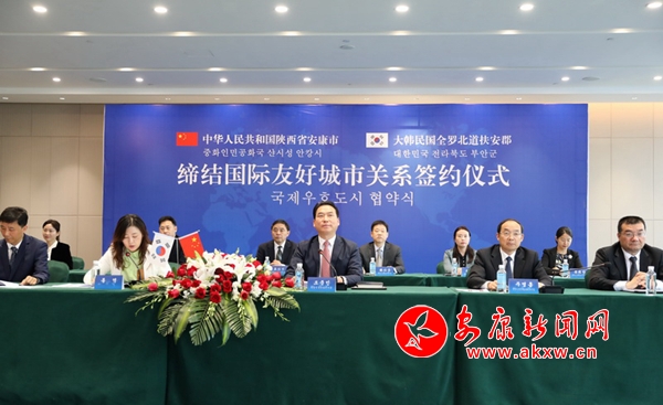 本網(wǎng)訊(記者 艾蓓 通訊員 梁石)4月28日,“中華人民共和國(guó)陜西省安康市和大韓民國(guó)全羅北道扶安郡締結(jié)國(guó)際友好城市關(guān)系簽約儀式”通過(guò)互聯(lián)網(wǎng)線上舉行,兩市正式……