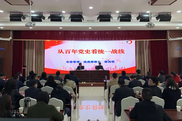 4月7日,市委統(tǒng)戰(zhàn)部舉辦全市統(tǒng)一戰(zhàn)線黨史學(xué)習(xí)教育專題講座,市委常委、統(tǒng)戰(zhàn)部部長(zhǎng)雷西明以《從百年黨史看統(tǒng)一戰(zhàn)線》為題作專題輔導(dǎo)。 講座中,雷西明系統(tǒng)描述了中……