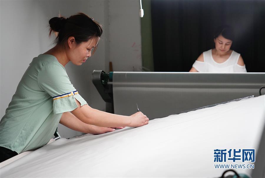 7月19日,工人在石泉縣陜西天成絲業(yè)有限公司檢驗車間內(nèi)檢驗修布。新華社記者 邵瑞 攝