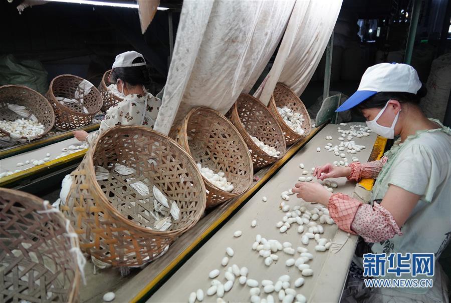 7月19日,工人在石泉縣陜西天成絲業(yè)有限公司生產(chǎn)車間內選繭。新華社記者 邵瑞 攝