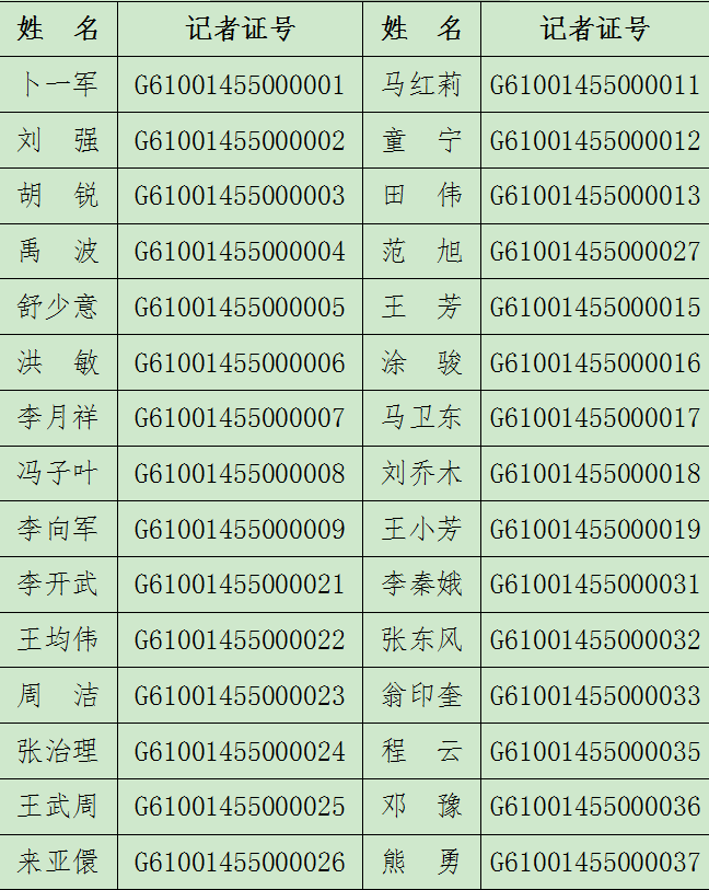 為進一步規(guī)范新聞采訪秩序,堅決打擊假記者、假媒體、假記者站、假網(wǎng)站和新聞敲詐行為,維護新聞媒體權(quán)威和新聞記者權(quán)益,為加快建設(shè)西北生態(tài)經(jīng)濟強市營造良好輿論環(huán)境,現(xiàn)將經(jīng)省委網(wǎng)信辦、省新聞出版廣電局批準設(shè)立的省級媒體駐安康記者站、省級新聞網(wǎng)站安康頻道、市級新聞單位及持證記者名單予以公布。