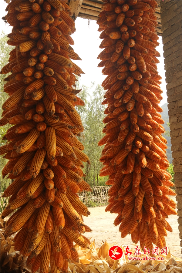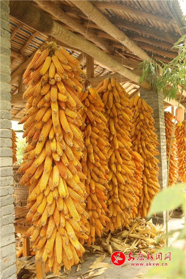 黃澄澄的玉米掛滿房前屋后。記者將這一場景迅疾抓拍,成就了“金秋豐收季”又一作品。