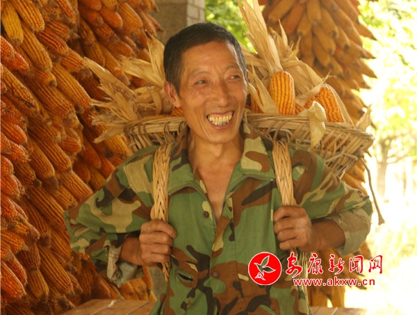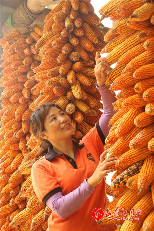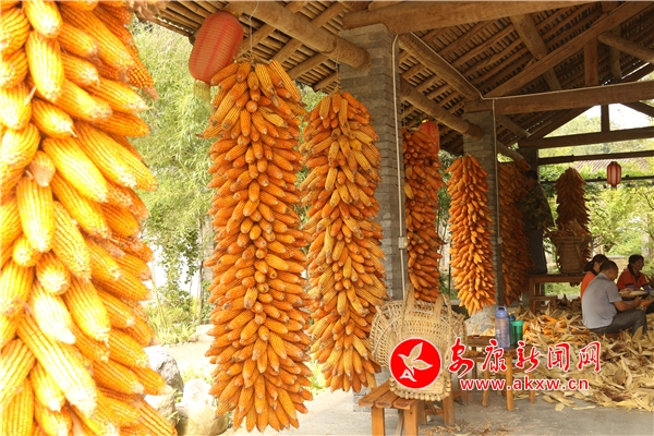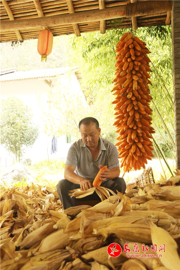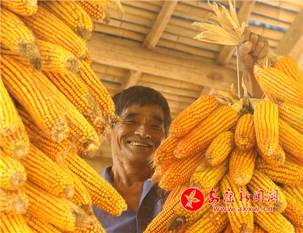 辛勞了大半年的村民,面對掛滿庭院的金色玉米,掩不住內心豐收的喜悅和滿意的笑容。