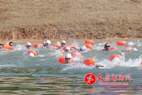 比賽現(xiàn)場(chǎng),選手們你追我趕,在寬廣的湖中盡情體驗(yàn)湖泊暢游的快感,享受著健身運(yùn)動(dòng)帶來的快樂。本次比賽場(chǎng)地選在瀛湖風(fēng)景區(qū)翠屏島湖面,相較于傳統(tǒng)賽道比賽模式,天然水域上的比賽不但是游泳技巧的較量,更是勇氣、毅力、耐力的比拼。