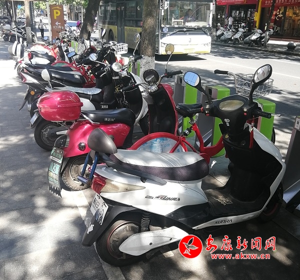 本網(wǎng)訊(記者 牟慶紅)7月31日,記者在興安中路一商城門前發(fā)現(xiàn),大量摩托車、電動(dòng)車扎堆停放在城市公共自行車樁旁,使得公共自行車無法?俊