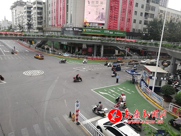 8月2日,記者在中心城區(qū)馬坎十字發(fā)現(xiàn)了道路新增綠色引導(dǎo)區(qū)域,記者從漢濱交警大隊(duì)了解到,目前城區(qū)除了馬坎十字之外,中心廣場(chǎng)十字、一橋橋南十字,東堤十字的三車等待區(qū)也在同步施劃中,警示車輛各行其道。
