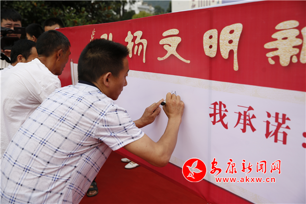 72名本科上線學生和家長佩戴著大紅花端坐在廣場接受全鎮(zhèn)鄉(xiāng)親們的祝福。老縣鎮(zhèn)黨委為金榜題名的學子頒發(fā)榮譽證書和獎金,同時,學生家長在“不收升學禮、不辦升學宴”承諾簽名墻前,簽下承諾簽名。在感恩父母環(huán)節(jié),父母與孩子深情相擁,他們真切的語言使整個會場充滿愛與感動。