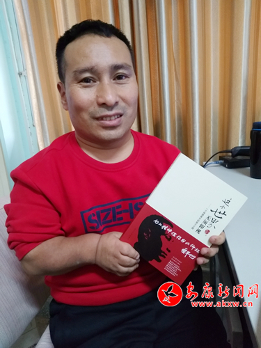 雖然被禁錮在矮小的身軀中,但殘疾作家王庭德從未放棄對詩和遠方的追求。從起步的短篇《跋涉的生命》,到歷時兩年完成19.7萬字的長篇自傳體紀實文學(xué)《這個世界無須仰視》和詩集《心靈的燈盞》,腦海中的數(shù)萬文字傾瀉,書寫出王庭德自強不息的奮斗人生。