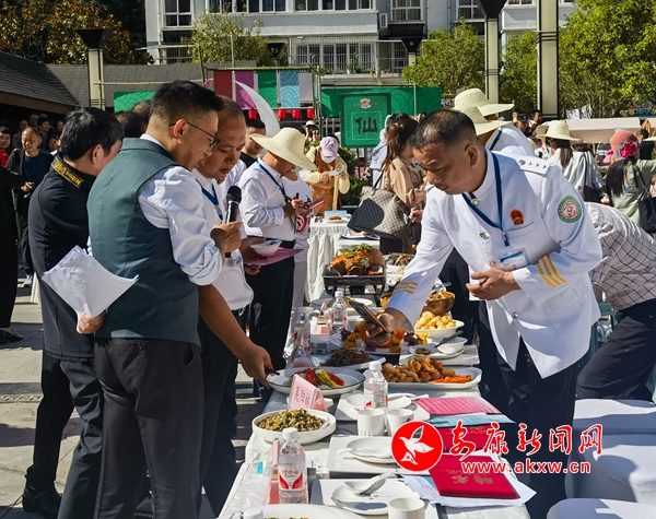 活動(dòng)現(xiàn)場(chǎng),來(lái)自八仙鎮(zhèn)各村組的19組選手,紛紛拿出自己的看家絕活,在現(xiàn)場(chǎng)設(shè)置的灶臺(tái)前,煎、炸、煮、蒸、炒,各式烹飪手法齊上陣,金銀蛋卷、洋芋粑粑炒臘肉、天蒜土豆絲、天麻烏雞湯一道道美味佳肴精彩亮相。