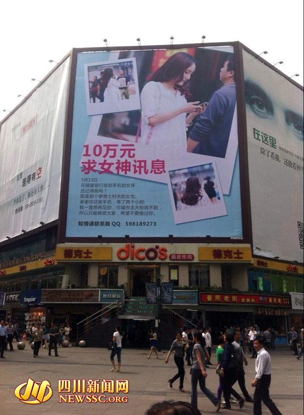 神秘金主懸賞10萬(wàn) 登巨幅廣告尋"女神"