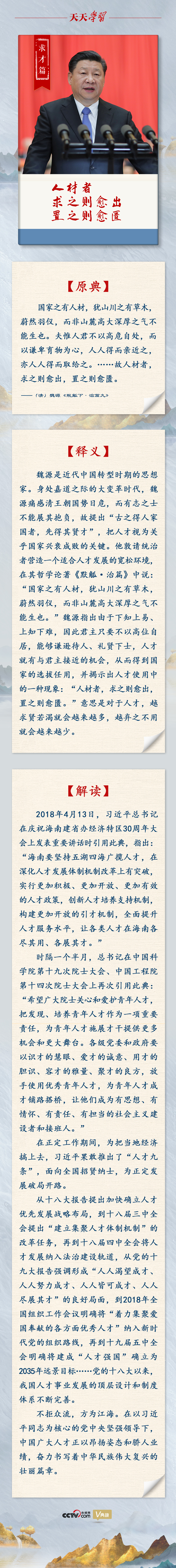 編者按:中央人才工作會議9月27日至28日在北京召開,習近平總書記出席會議并發(fā)表重要講話。黨的十八大以來,總書記站在黨和國家事業(yè)發(fā)展全局的戰(zhàn)略高度,對我國人才事業(yè)發(fā)展作出一系列重要指示。在講話和文章中,他大量引用有關(guān)中國古代人才思想的典故,就如何選才、敬才、求才、育才、用才等話題,提出了一系列新思想、新觀點、新論斷、新要求,為新時代做好人才工作提供了根本遵循和行動指南!短焯鞂W習》帶您一起學習回顧。