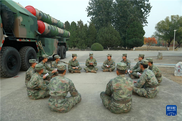 中共中央總書記、國家主席、中央軍委主席習(xí)近平24日下午出席軍隊(duì)領(lǐng)導(dǎo)干部會(huì)議時(shí)發(fā)表的重要講話,在解放軍和武警部隊(duì)引起強(qiáng)烈反響。這是中部戰(zhàn)區(qū)空軍“模范地空導(dǎo)彈營”開展“鳴鏑講堂”交流活動(dòng),積極組織官兵學(xué)習(xí)習(xí)主席重要講話(10月25日攝)。新華社發(fā)(趙勝之 攝)