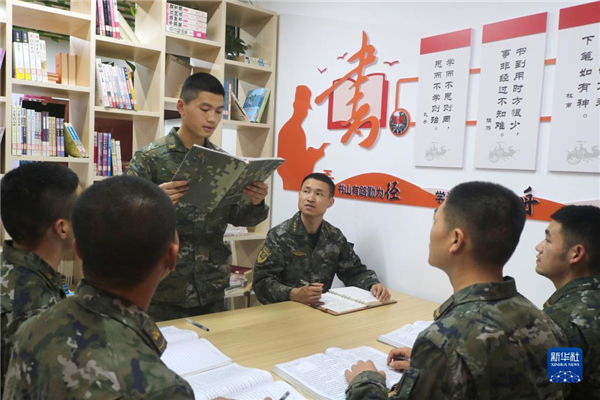 中共中央總書記、國家主席、中央軍委主席習(xí)近平24日下午出席軍隊(duì)領(lǐng)導(dǎo)干部會(huì)議時(shí)發(fā)表的重要講話,在解放軍和武警部隊(duì)引起強(qiáng)烈反響。這是新疆軍區(qū)奧爾托蘇邊防連官兵在圖書室認(rèn)真學(xué)習(xí)習(xí)主席重要講話(10月25日攝)。新華社發(fā)(劉南松 攝)