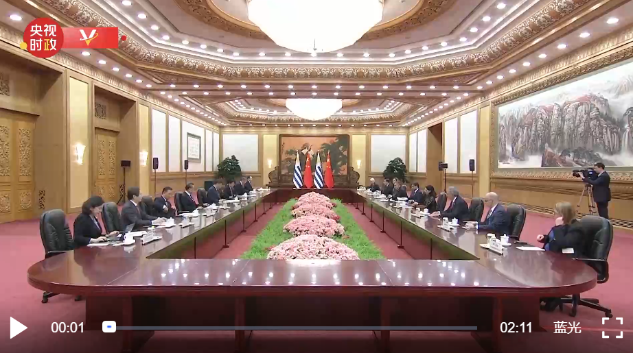 11月22日下午,國(guó)家主席習(xí)近平在人民大會(huì)堂同來華進(jìn)行國(guó)事訪問的烏拉圭總統(tǒng)拉卡列舉行會(huì)談。