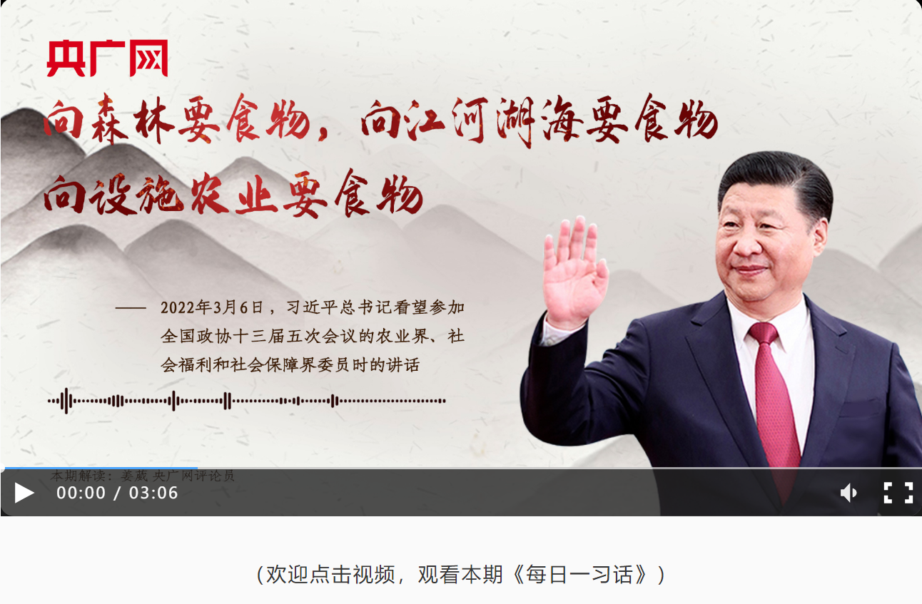 【每日一習(xí)話】向森林要食物,向江河湖海要食物,向設(shè)施農(nóng)業(yè)要食物