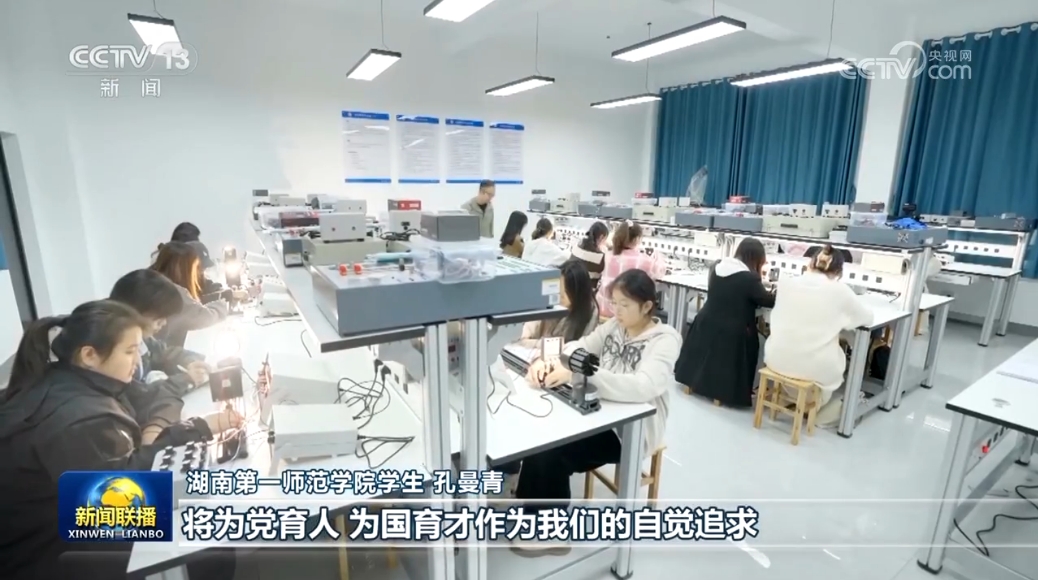 國(guó)家要強(qiáng)大,必須辦好教育。湖南第一師范學(xué)院每年為教學(xué)一線培養(yǎng)近2500名畢業(yè)生,其中超九成扎根在農(nóng)村學(xué)校,F(xiàn)場(chǎng)聆聽總書記的講話后,師生們表示,要在實(shí)踐中傳承紅色基因,擔(dān)負(fù)起培養(yǎng)時(shí)代新人的重要使命。