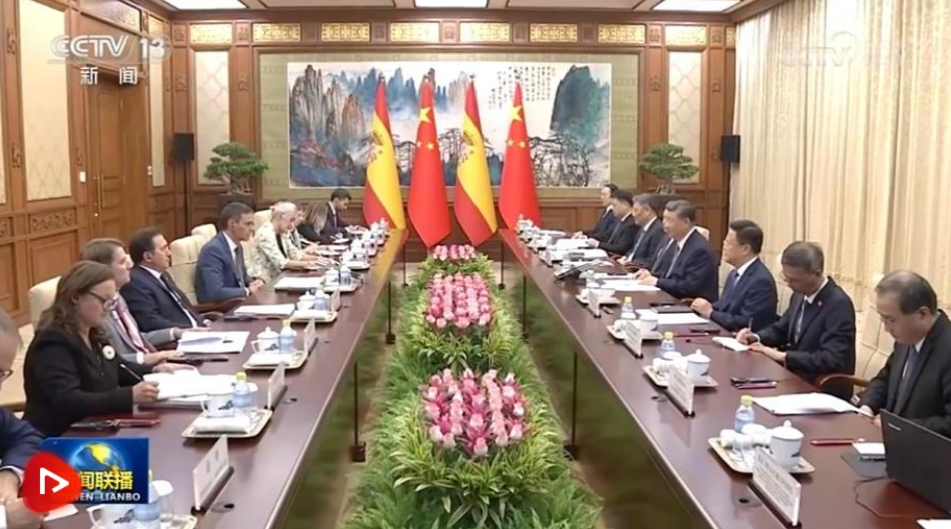 習近平指出,當今世界變亂交織,中國和西班牙都是具有責任感和使命感的國家,都倡導多邊主義和自由貿(mào)易。中方愿同西班牙擴大面向全球南方的第三方市場合作,加強在聯(lián)合國、二十國集團等國際組織中的溝通配合,為世界和平穩(wěn)定和人類進步事業(yè)注入更多正能量。