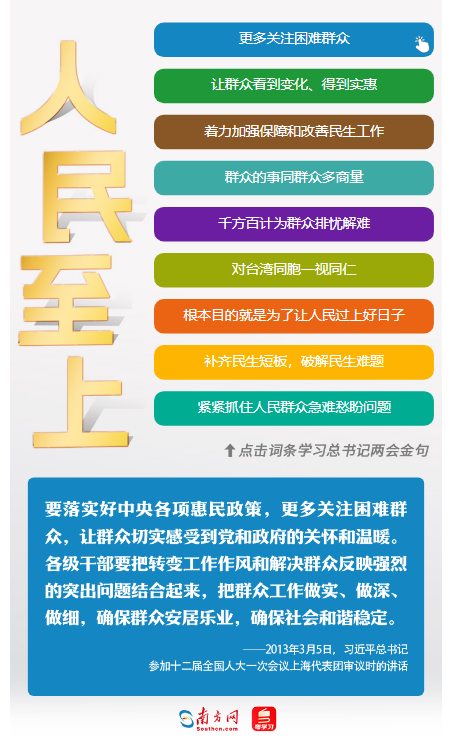 參加代表團審議,習近平總書記常常跟代表們提及民生工作、民生保障、民生改善等話題。“人民”二字在他心中分量最重。正如他所說,“黨團結帶領人民進行革命、建設、改革,根本目的就是為了讓人民過上好日子,無論面臨多大挑戰(zhàn)和壓力,無論付出多大犧牲和代價,這一點都始終不渝、毫不動搖。”