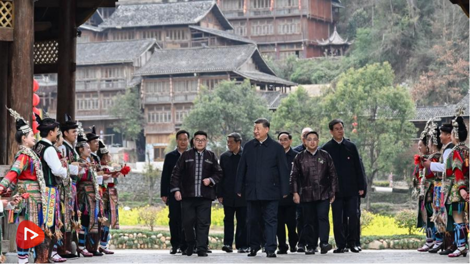 3月17日至18日,中共中央總書記、國家主席、中央軍委主席習近平在貴州考察。這是17日下午,習近平在黔東南州黎平縣肇興侗寨侗族文化展示中心考察。