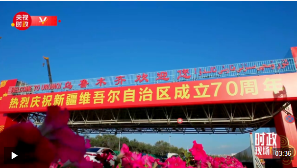 中共中央總書記、國家主席、中央軍委主席習(xí)近平率中央代表團23日下午乘專機抵達(dá)烏魯木齊,出席新疆維吾爾自治區(qū)成立70周年慶;顒印14時20分許,習(xí)近平乘坐的專機在天山國際機場降落,等候在停機坪的新疆各族各界群眾熱烈歡呼。習(xí)近平走下舷梯時,少先隊員獻(xiàn)上鮮花。各族群眾代表身著民族服飾,載歌載舞,歡迎總書記的到來,表達(dá)對總書記的衷心祝福。