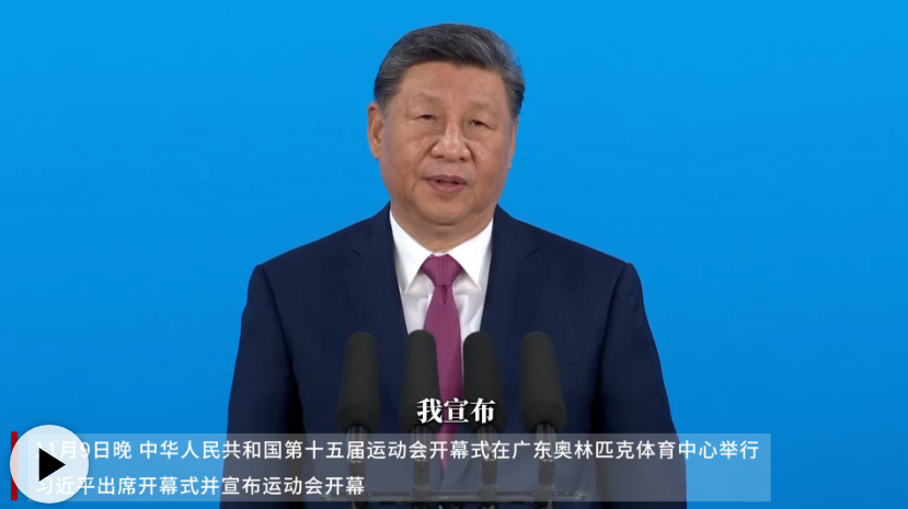 11月9日晚,中華人民共和國第十五屆運(yùn)動(dòng)會(huì)在廣東省廣州市隆重開幕。中共中央總書記、國家主席、中央軍委主席習(xí)近平出席開幕式并宣布運(yùn)動(dòng)會(huì)開幕。cy9安康新聞網(wǎng)