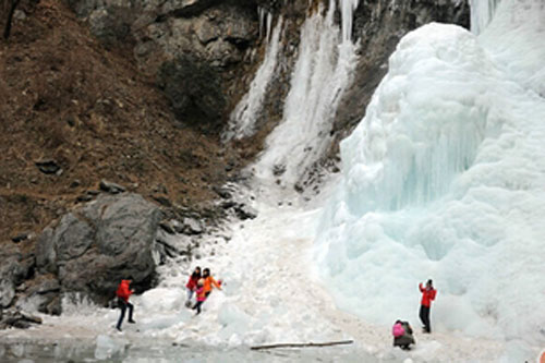 澇峪黑山現(xiàn)冰凍瀑布奇觀