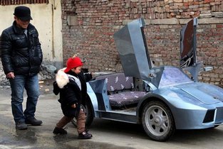市郊城中村里出現(xiàn)一輛跑車總能吸引大家的目光。 (侯建勛攝)2014年2月19日,河南省鄭州市二七區(qū),一輛手工自制的跑車吸引了不少市民觀看。50多歲的郭大爺是這輛……