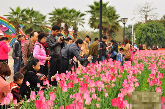 廣西柳州園博園的20萬株郁金香競相開放,五彩繽紛花朵引來眾多市民觀賞、拍照。周瀟男 攝2月6日,廣西柳州園博園的20萬株郁金香競相開放,吸引了眾多游人前來觀……