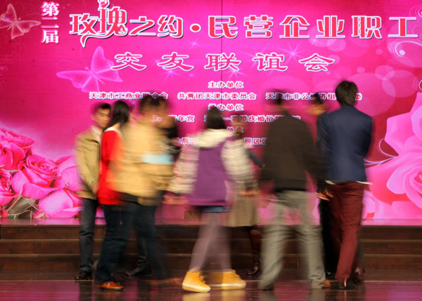 11月10日,前來相親的青年男女手牽手參與互動游戲——“桃花朵朵開”。當(dāng)日,天津市“第二屆玫瑰之約·民營企業(yè)職工交友聯(lián)誼會”在天……