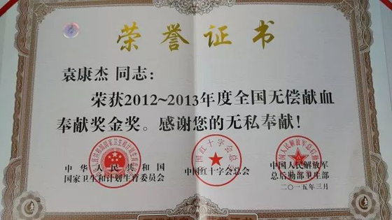 全國(guó)無(wú)償獻(xiàn)血志愿服務(wù)二星級(jí)獎(jiǎng)、安康學(xué)院學(xué)生:朱子昊(右)rEu安康新聞網(wǎng)
