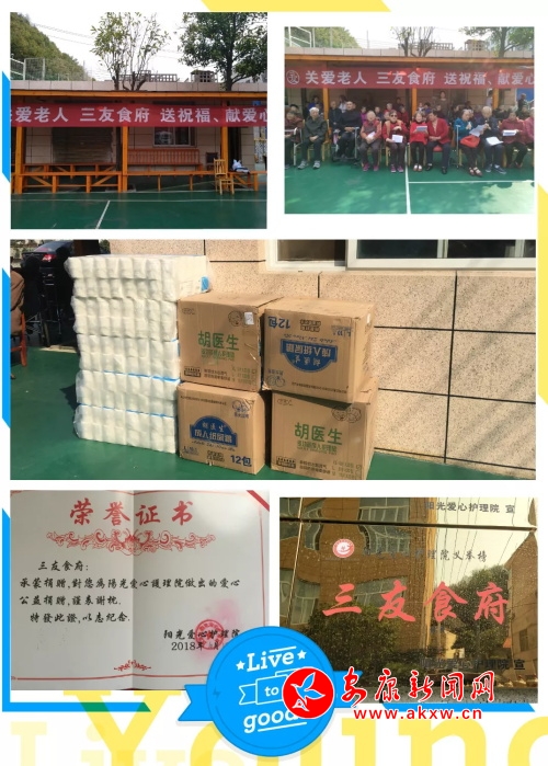 安康新聞網(wǎng)訊(記者 周。 愛不是靠說,而是靠做。說得再多不如踏實(shí)去做,愛老關(guān)鍵靠行動(dòng)。昨天是農(nóng)歷9月9日重陽節(jié),為關(guān)愛老人,三友食業(yè)免費(fèi)為護(hù)理院老人送溫暖,送早餐、紙巾,尿不濕等老人用品。并在這段時(shí)間里為70歲以上老人提供免費(fèi)早餐。