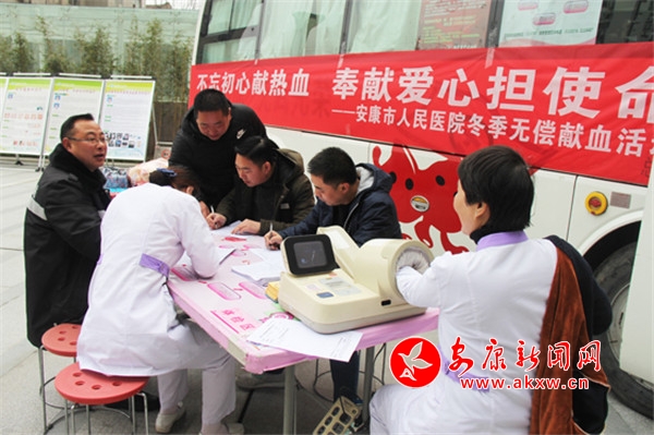 本網(wǎng)訊(通訊員 屈閔)鼠年春節(jié)將至,由安康市中心血站牽頭組織的團(tuán)體冬季獻(xiàn)血活動(dòng)進(jìn)入沖刺階段。1月14至15日,獻(xiàn)血車來到了安康市人民醫(yī)院,此次活動(dòng)得到了院方領(lǐng)導(dǎo)的高度重視,全院提前下發(fā)獻(xiàn)血通知,通過多種方式提前做好宣傳動(dòng)員工作,鼓勵(lì)全體職工踴躍參加獻(xiàn)血活動(dòng)。