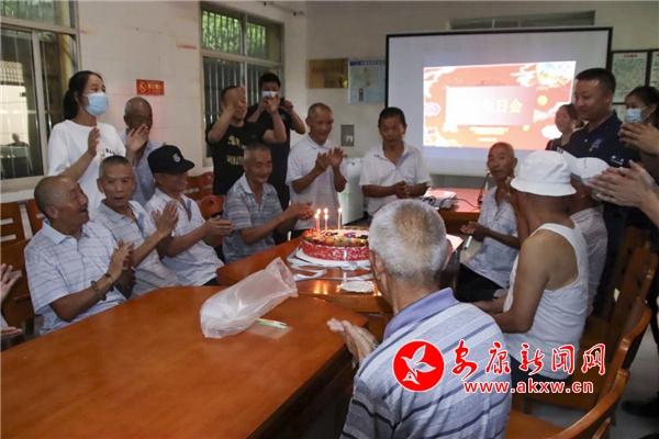 活動(dòng)現(xiàn)場(chǎng),他們?yōu)槔先藗兯腿ヅD、礦泉水、牙膏等生活用品,宣講防疫小知識(shí),并為11位老人集體慶生,為他們精心準(zhǔn)備了生日蛋糕和禮品。老人們圍桌而坐,一起唱生日歌,現(xiàn)場(chǎng)其樂融融。