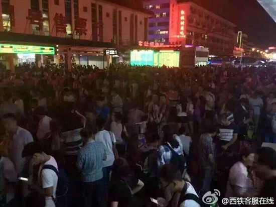 西安火車站大量旅客滯留。