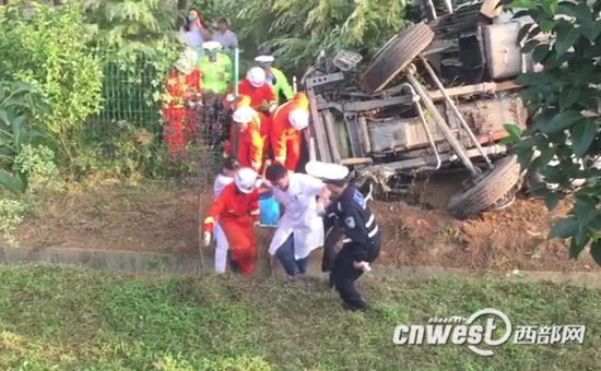 今天(9月13日)5時(shí)52分,一輛拉運(yùn)大蒜的河南牌照半掛車在西寶高速距眉縣服務(wù)區(qū)兩公里處沖下護(hù)欄側(cè)翻,車上2人被困,寶雞公安消防支隊(duì)眉縣中隊(duì)接到報(bào)警后將被困人員救出送往醫(yī)院救治。