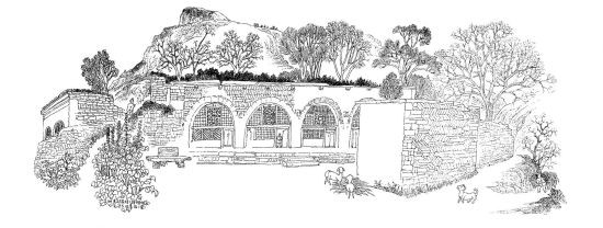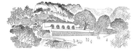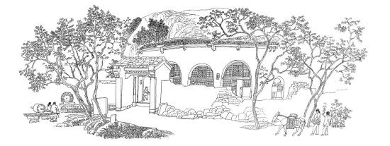 陜北革命舊址寫生,面對復(fù)雜的景物,須瞬間分析,即刻做出判斷、選擇、取舍、構(gòu)圖,抓住整體、突出特點,果斷下筆。以線寫生,務(wù)求準(zhǔn)確,落筆后,線不可重復(fù),也無法修改。寫生時,常常左手打傘,天熱時遮陽光,每當(dāng)大汗淋漓,也顧不上擦;下雨時,盡量用傘遮住畫紙,堅持畫完,即便衣服濕透也無所謂。如果對寫生作品不滿意時,就重新赴舊址寫生,僅涇陽縣云陽革命舊址,他就去過4次,清澗縣石嘴驛去了3次,直到畫好為止。