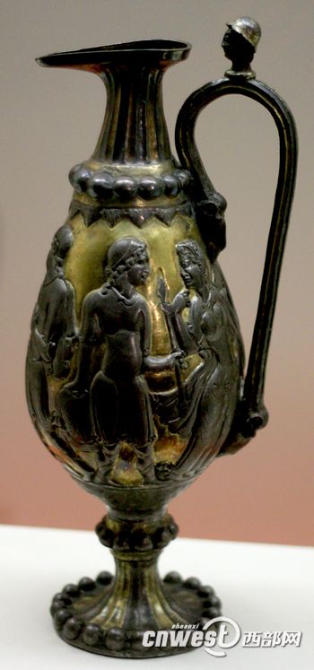 10月11日,據(jù)陜西歷史博物院官方透露,這件中國人收藏的雕刻有希臘神話故事的波斯鎏金銀瓶已經來到西安,將和其它140件來自西北五。▍^(qū))的絲綢之路主題文物一道,亮相10月17日開展的《長安絲路東西風》展上。
