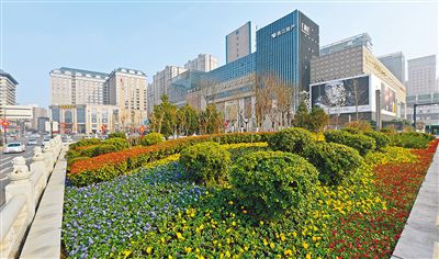 南二環(huán)道路中央?yún)^(qū)域鮮花盛開,綠草茵茵。 記者 謝偉 攝