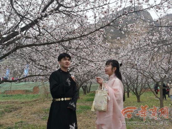 “二月二龍?zhí)ь^,又叫春耕節(jié),萬(wàn)物復(fù)蘇。梅花已謝杏花新,今天來(lái)到杏花林,好美啊!”來(lái)自西安培華學(xué)院星霜閣古風(fēng)社團(tuán)的社員一人著唐朝圓領(lǐng)袍,另一人著立領(lǐng)大袖服和社員們一起來(lái)賞花,他們說(shuō)回去要寫下自己的感受。