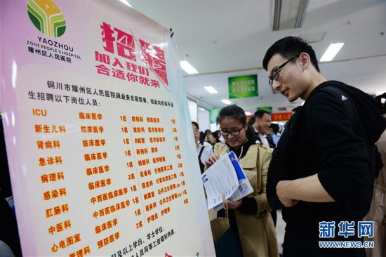 4月1日,學生在招聘會上了解銅川市耀州區(qū)人民醫(yī)院招聘情況。當日,陜西省2018年縣及縣以下醫(yī)療衛(wèi)生機構定向招聘醫(yī)學類本科畢業(yè)生專場招聘會在陜西省人才交流服務中心舉行,現(xiàn)場提供崗位2415個,涉及臨床醫(yī)學、預防醫(yī)學、口腔醫(yī)學、醫(yī)學影像等專業(yè)。新華社記者李一博攝xuS安康新聞網(wǎng)