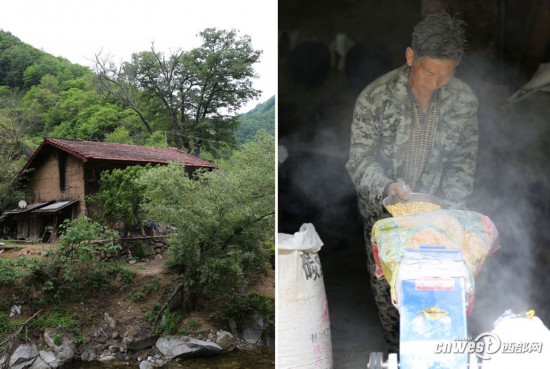 5月9日,漢中佛坪岳壩鎮(zhèn)獅子壩村,60歲的方如生在老房子里磨玉米粉,細(xì)細(xì)的玉米粉塵飄著,染白了他的臉和頭發(fā)!z88安康新聞網(wǎng)