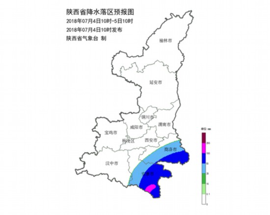 陜西省氣象臺(tái)7月4日10時(shí)00分降級(jí)發(fā)布暴雨藍(lán)色預(yù)警