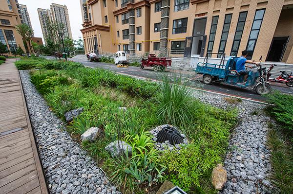 遍布于居民小區(qū)、學(xué)校、商業(yè)場所、公共區(qū)域的雨水收集池等蓄水模塊,則成為了大大小小的蓄滯洪水區(qū),讓雨水最大限度地留下來,得到凈化利用,有序外排。