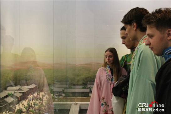 絲路青年觀看中國傳統(tǒng)民居微縮實景 (攝影 羅赟鵬)
