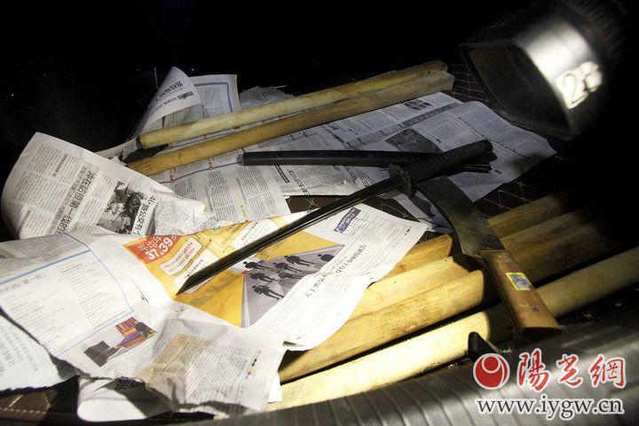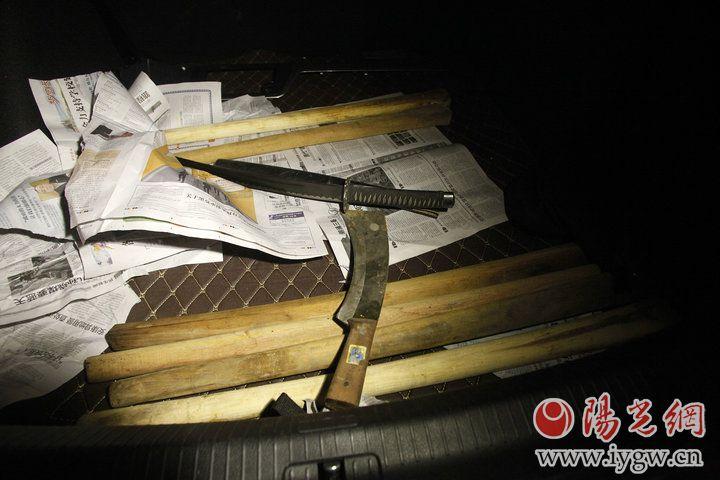 記者跟隨一路民警來到東揚(yáng)善村,清查過程中,民警發(fā)現(xiàn)一無牌車輛停在道路中央,車上有2名男子,民警遂上前進(jìn)行盤查,但2名男子拒不配合民警工作。經(jīng)進(jìn)一步對(duì)車輛檢查發(fā)現(xiàn),后備箱中藏有管制刀具2把,木棍4根。2名男子見狀欲逃離現(xiàn)場(chǎng),民警眼急手快,迅速將其當(dāng)場(chǎng)制服。經(jīng)突審,2名男子因與人發(fā)生經(jīng)濟(jì)糾紛,故攜帶了管制刀具和木棍。2名男子現(xiàn)已被帶回派出所接受進(jìn)一步調(diào)查。