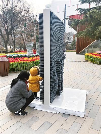 根據(jù)伍先生反映的情況,24日上午,記者來到位于高新區(qū)的創(chuàng)業(yè)咖啡街區(qū),在街區(qū)北側(cè)廣場上,記者看到伍先生提到的4座三維人體百變針雕。整個(gè)針雕是一個(gè)類似大相框的鐵架子,中間放置了上千根塑料材質(zhì)的針管。人只要向這些針管靠進(jìn)去,對(duì)面就會(huì)印出一個(gè)立體的人形,非常有趣。然而記者注意到,雖然每個(gè)大鐵框下方預(yù)留有螺絲孔,但卻沒有進(jìn)行固定。現(xiàn)場,不時(shí)有孩子和市民好奇地在上面玩耍。