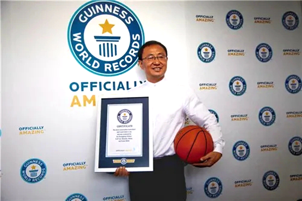 (徐長清2016年打破半場超遠(yuǎn)投籃六連中吉尼斯世界紀(jì)錄時(shí)領(lǐng)獎(jiǎng)留影 攝影 姚建宇)